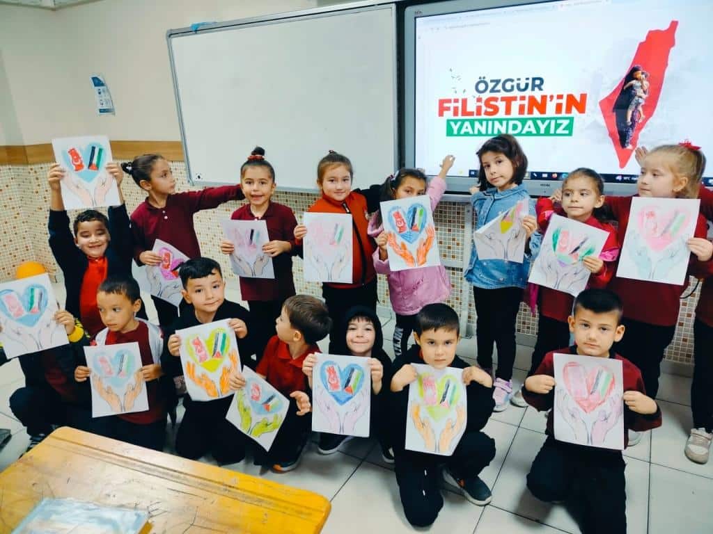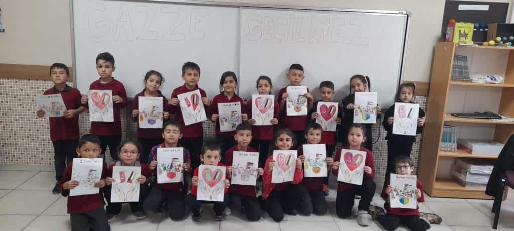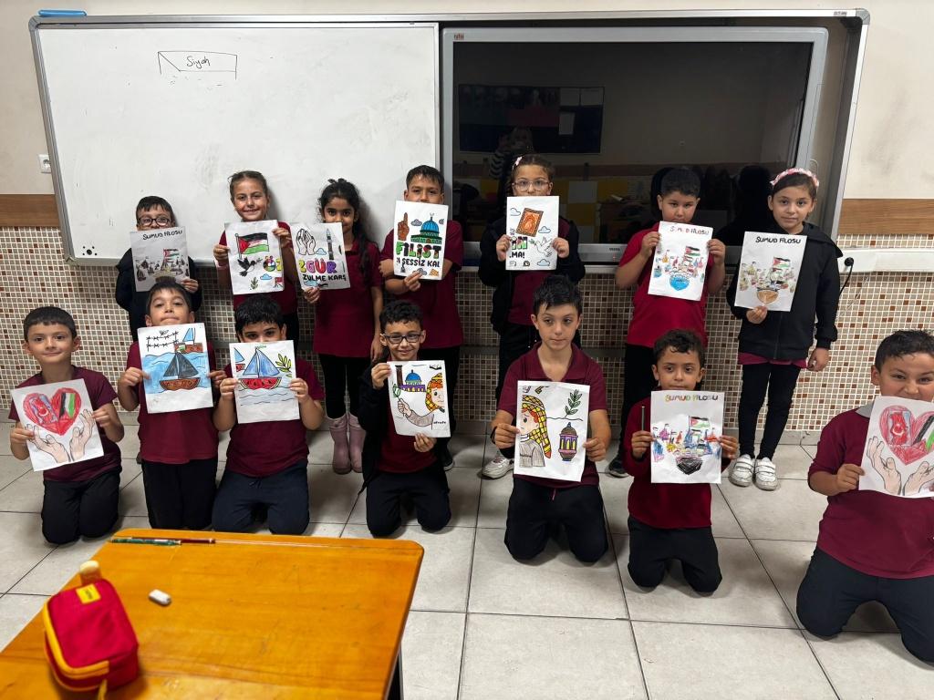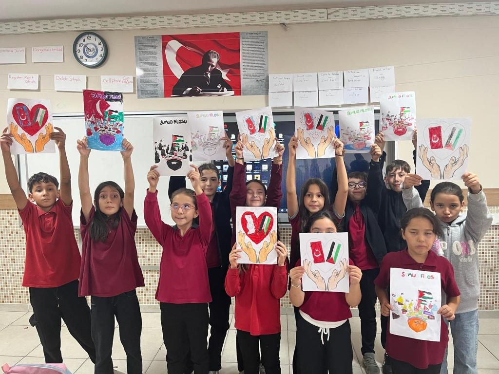 Milli Eğitim Bakanlığı'mızdan gönderilen yazı doğrultusunda; Okulumuzda öğrencilerimizin, Gazze'de çocukların yaşadığı sıkıntıları, uğradıkları soykırımı bir nebze de olsun hissedebilmeleri, onlarla dayanışma içerisinde olabilmeleri ve Türkiye Yüzyılı Maarif Modeli'ndeki 'erdem, değer, eylem' çerçevesinde öğrencilerimizin evrensel değerlere uygun, vicdanlı, ahlaklı ve nerede bir mazlum varsa onlara sahip çıkan bireyler olarak yetişmelerini hedeflediğimiz bir faaliyeti gerçekleştirdik.