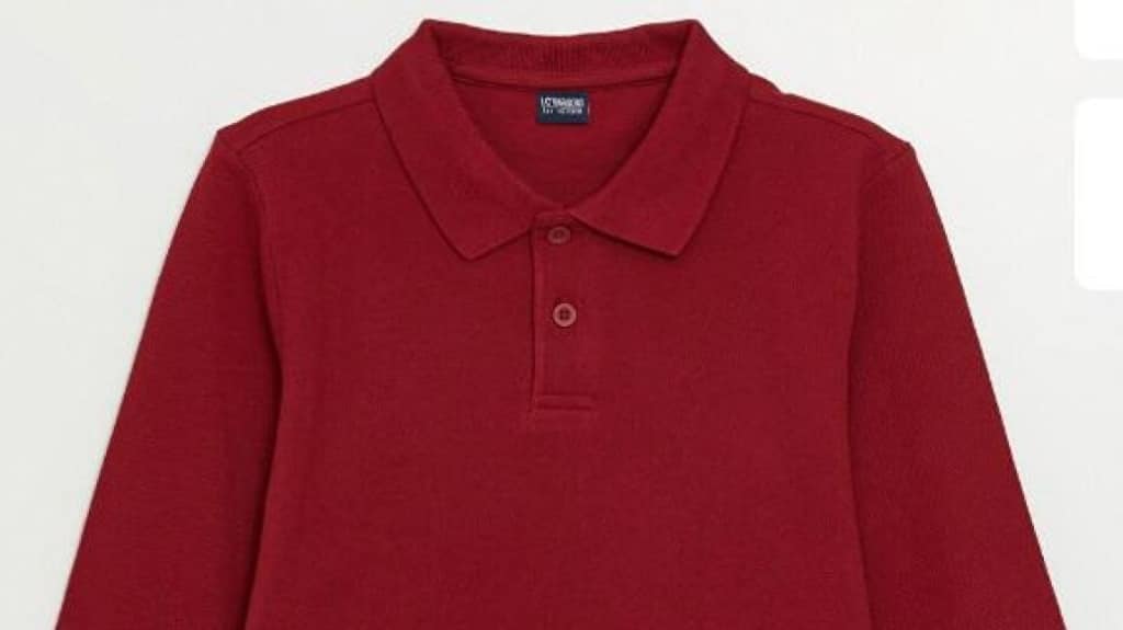 - Sıcak mevsimlerde kısa kollu, soğuk mevsimlerde uzun kollu yakalı düz bordo tişört